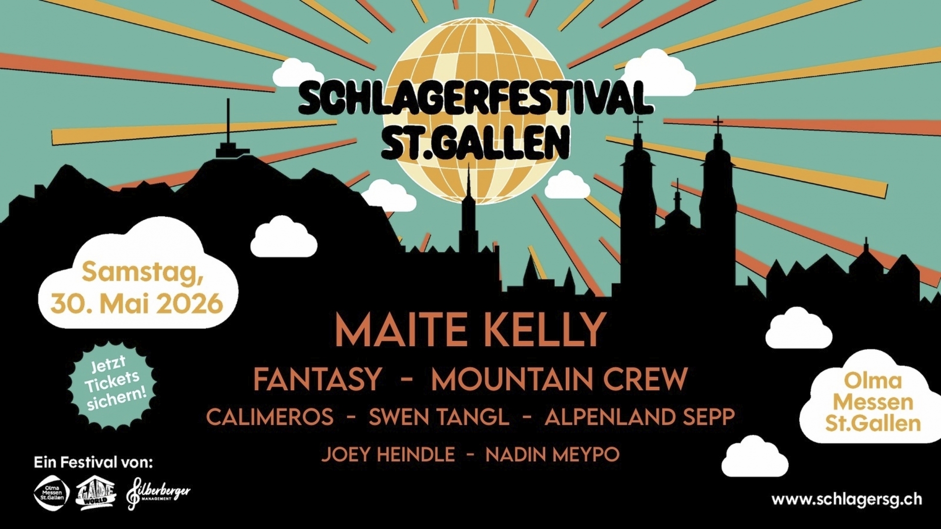 Aus dem Alpenland Musikfestival Bürglen und dem Schlagerfestival Gais entsteht nun das Schlagerfestival St. Gallen. Maite Kelly, Fantasy, die Mountain Crew, die Calimeros, Swen Tangl, Joey Heindle und Nadin Meypo sorgen für gute Stimmung. Durchs Programm führt der legendäre Alpenland Sepp.